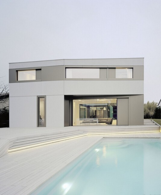 如今的別墅私人泳池都忽略了現成的樓梯,跟地平面齊高的水平面,用隱藏在水下的階梯令泳池與地面融為一體。
